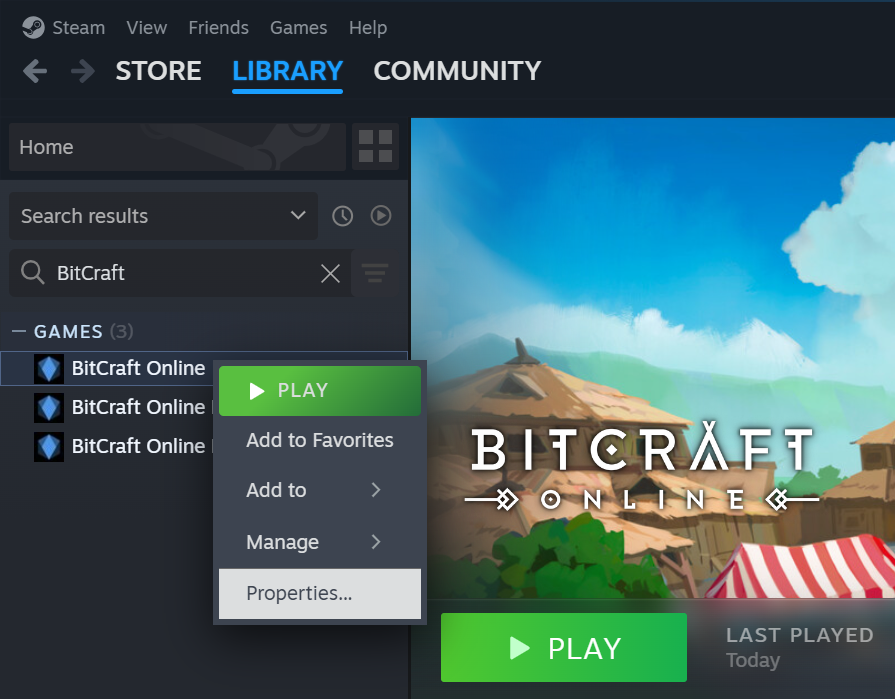2. On the left side of the screen, find your copy of "BitCraft Online" in the panel