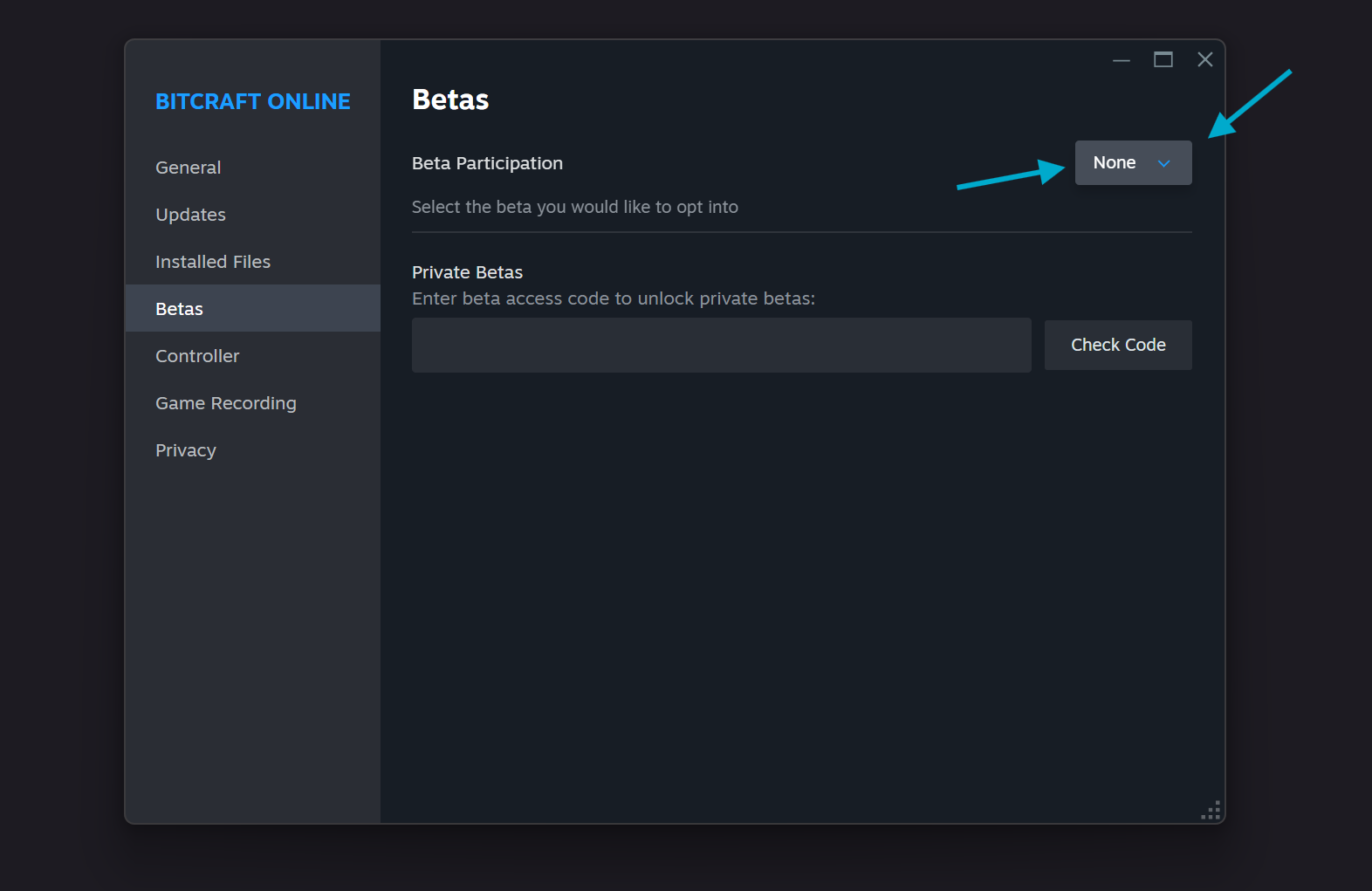 5. In the "Beta Participation" section, there is a dropdown menu on the right
