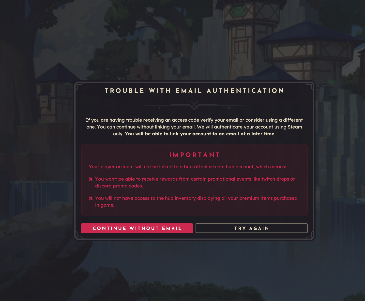If you are currently logged in to your account without having used your email for the initial login, you now have the option to link your email address to your BitCraft account.