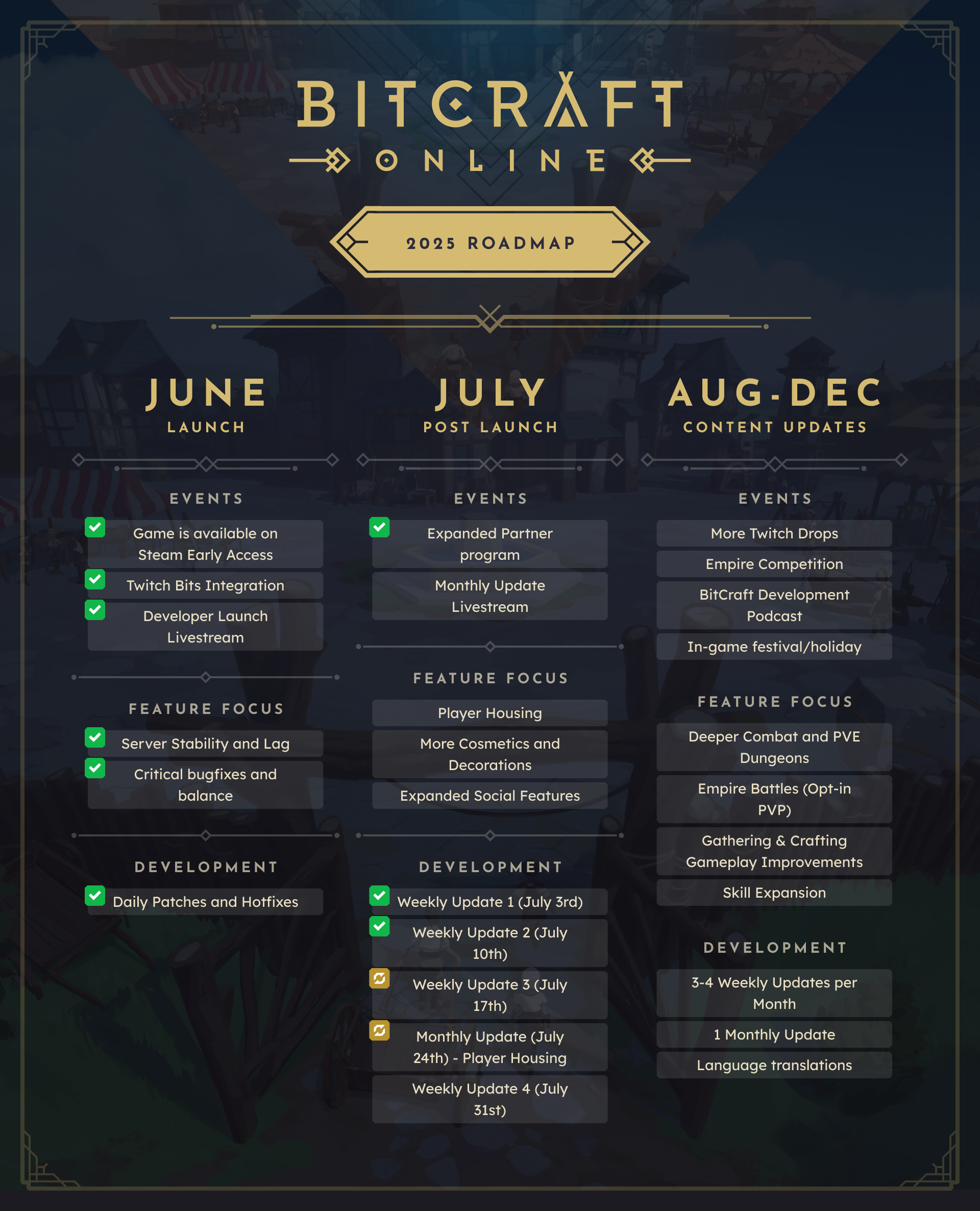The BitCraft Online roadmap charts an exciting journey through the rest of the year, teasing some major updates and engaging in-game events that promise players new ways to play and connect. While we’re keeping some of the finer details for later, we hope this glimpse ahead offers plenty to look forward to as the world of BitCraft continues to grow.